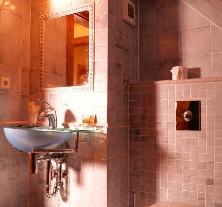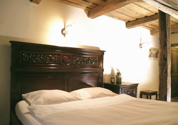 Útulný dvoulůžkový pokoj vybaven krásným dřevěným nábytkem, manželskou postelí a komodou. V pokoji se dále nachází přiznané trámy, které utvářejí celkovou atmosféru v pokoji. Koupelna je jedinečná svou vanou, vsazenou do podlahy. Výhled v pokoji je směřován na venkovní prostor před celou budovou.